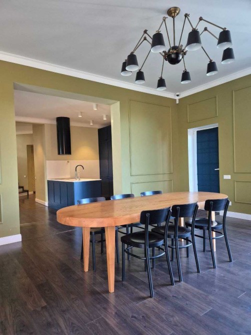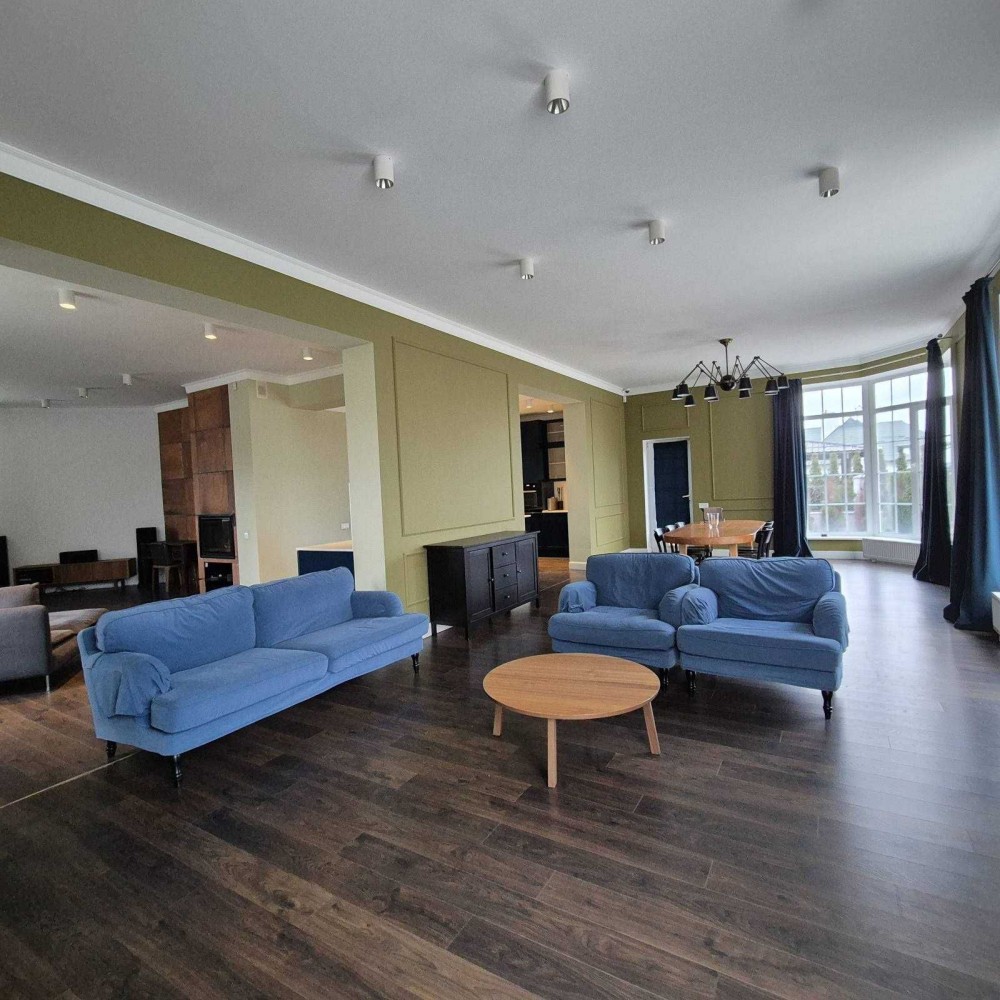 Кухня, столова і вітальня утворюють єдиний житловий простір із виходом на терасу. Камінна зала, зручна зона для відпочинку біля телевізора, обідній стіл на велику компанію — усе створено для приємного проведення часу у колі родини чи друзів.