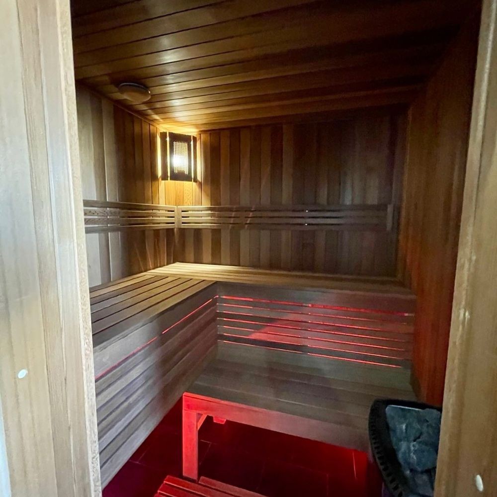 В одной из ванных комнат оборудована сауна.