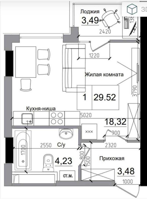 • Однокомнатная
