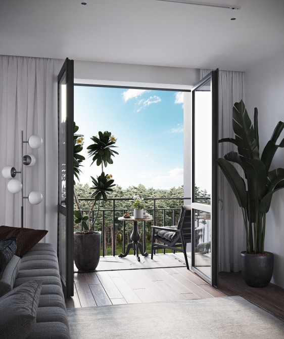 Квартира-смарт обладнана балконом, можна використовувати як кабінет. Житловий комплекс розташований поруч із парком Щасливий, а також має зручний виїзд до Києва (6 км). У безпосередній близькості розташовані магазини, амбулаторія, ринок, дитячі садочки та школа.
