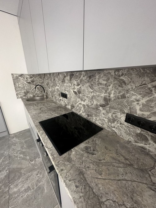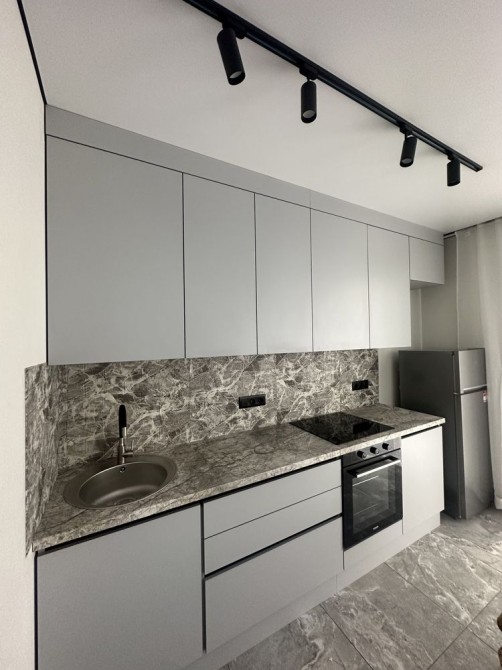 Квартира повністю готова для проживання — простора кімната-студія, разом із кухнею.