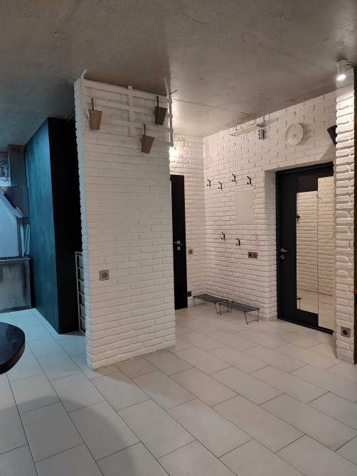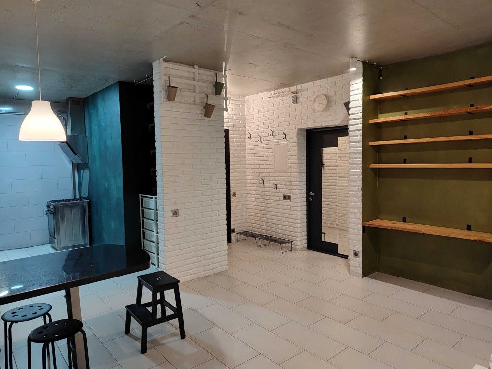 - стеля - полірований бетон покритий найдорожчим затверджувачем (вкрай дороговартісна робота, адже робиться тільки вручну, болгаркою)