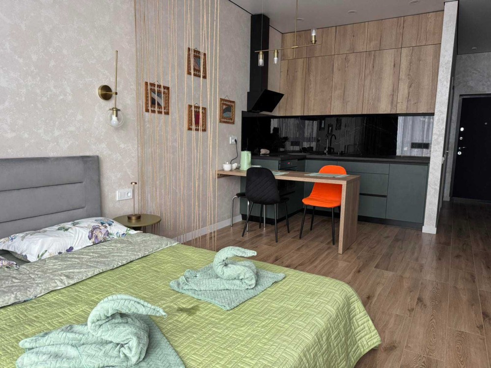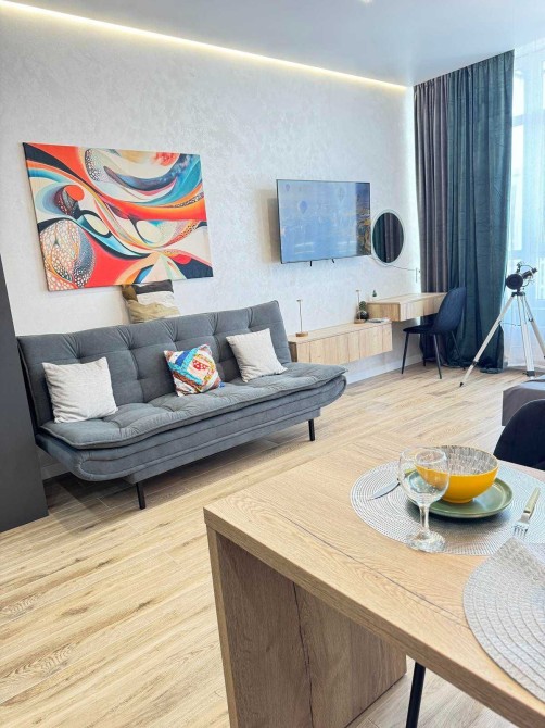 Сдается стильная студия в жилом комплексе Атмосфера, укомплектована всей мебелью и техникой .Красивый вид из окон во внутренний двор и море. Рядом море, парки, Французский Бульвар, центр города. Нет отключения света.