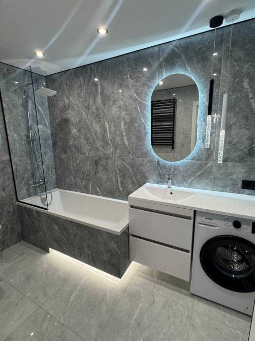 Якісний ремонт у спокійних тонах. Повністю укомплектована меблями та побутовою технікою, включно з посудомийною машиною та кондиціонером.