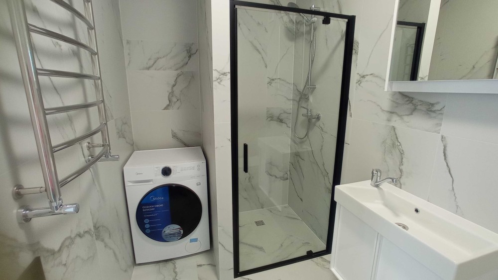 Сучасна 2 кімнатна квартира з дизайнерським ремонтом .Є всі необхідні меблі та побутова техніка, в тому числі- кондиціонер, посудомийна машина, фільтр води, холодильник, пральна та сушильна машини,вбудовані духова шафа та мікрохвильова піч.