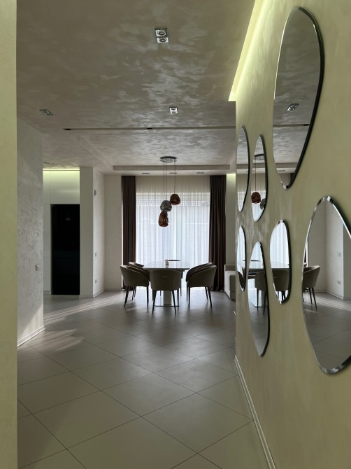 Інтер’єр виконано за авторським дизайнерським проєктом із використанням італійських матеріалів.