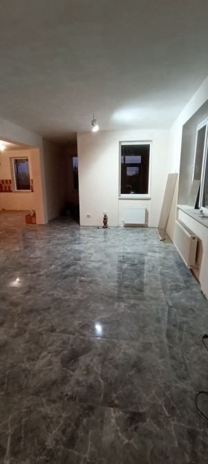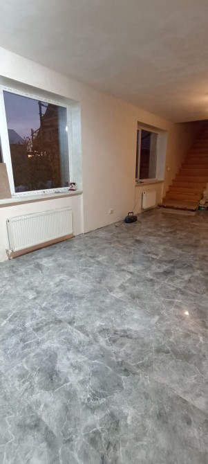 Перший поверх загальною площею 112м2, на ньому розташовані: гараж 25м2, простора кухня площею 25 м2, вітальня, сауна, туалет, ванна кімната. На підлозі на першому поверху керамічна плитка, стіни підготовлені під покраску.