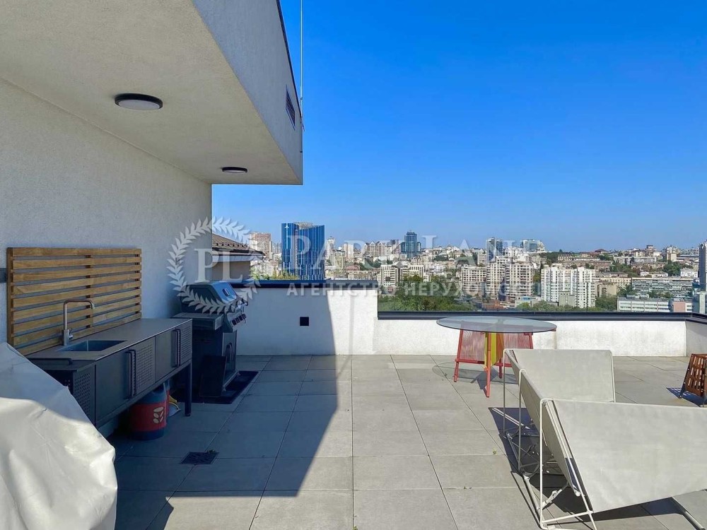 Сучасний будинок біля центру міста на Батиєвій горі, Соломʼянка, 405.4 м.кв. три рівні + тераса, монолітно-каркасний + червона цегла, ліфт, п'ять спальних кімнат, 5 сан.вузлів, кухня-столова, вітальня з панорамними вікнами, гараж на два авто, тераса на даху з відкритою кунею. Тепловий насос на опалення, встановлена вентиляція з рекуперацією повітря, відео спостереження, дизель-генератор, 6.5 соток, газон, авто полив. Чудове розташування, будинок на пагорбі з гарними видами, поруч вся інфраструктура, Соломʼянський парк, вул. Льва Толстого та ботанічний сад.