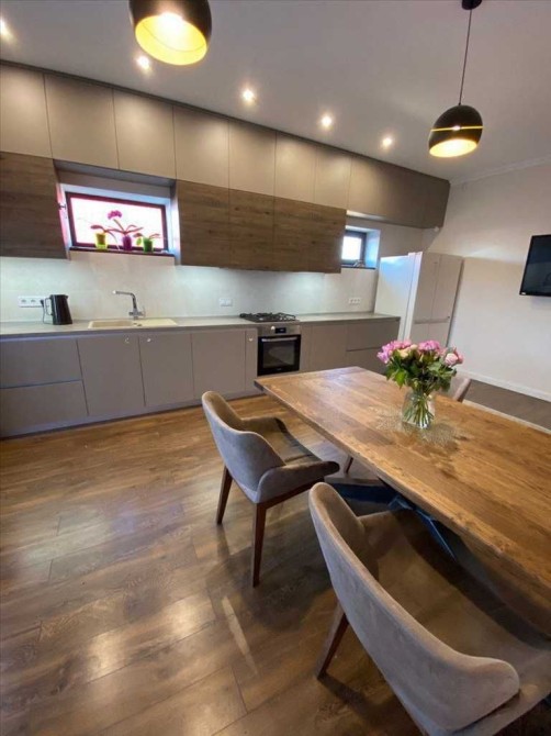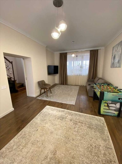 Будинок: два поверхи + мансарда, простора вітальня, велика кухня з виходом у двір, 3 спальні, гардеробна, сучасні санвузли. Тепла підлога, дубові сходи, кондиціонери, домашній кінотеатр із проектором.