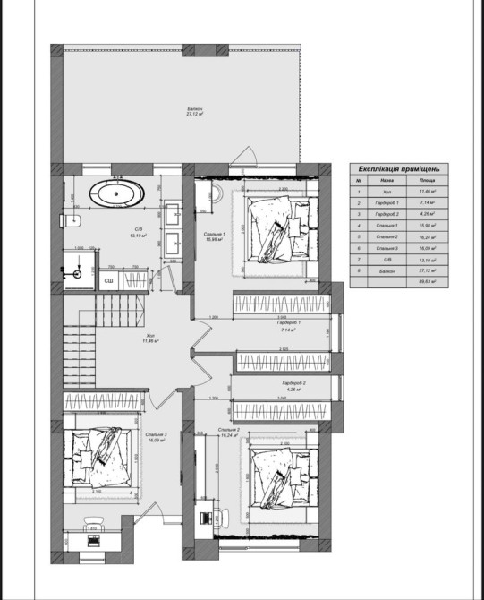 • 3 окремі спальні