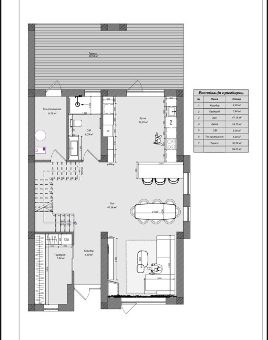 • Кухня-вітальня з виходом на велику терасу