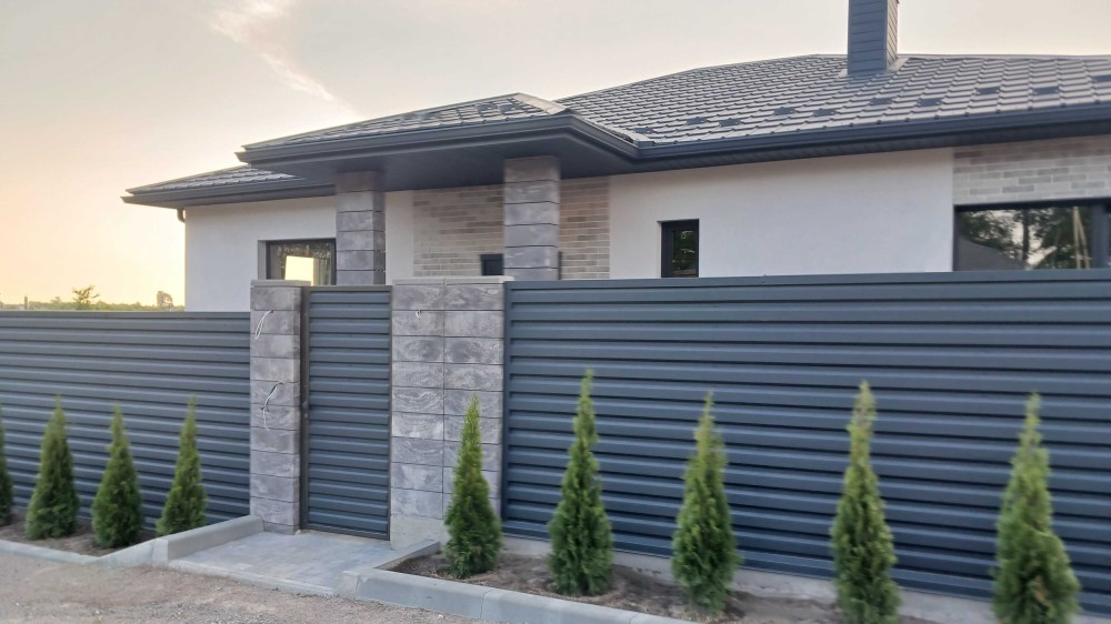 - Паркан навколо ділянки з оцинкованого металопрофілю (колір – графіт)