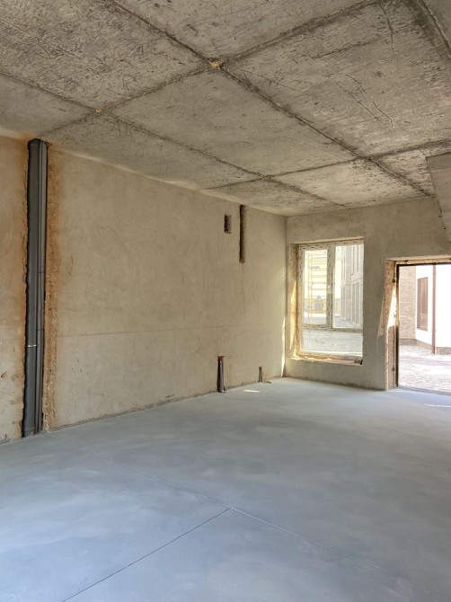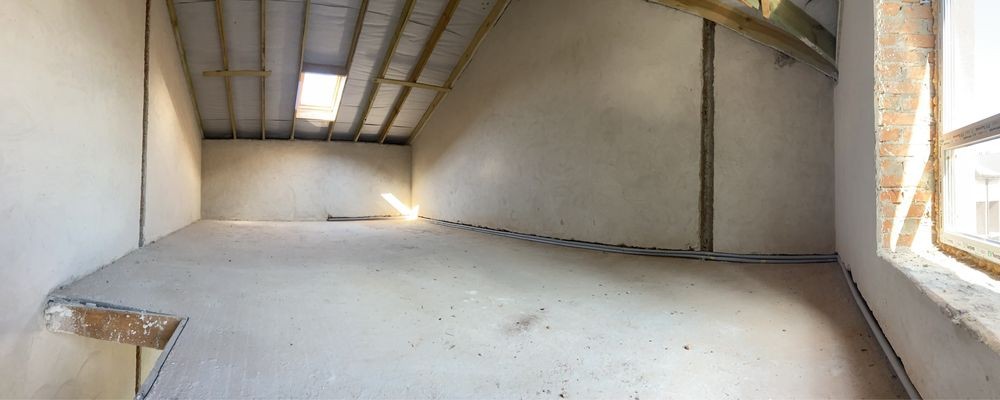 В таунхаусі виконано розводку теплої підлоги, сантехнічні роботи, штукатурка стін та стяжку підлоги.