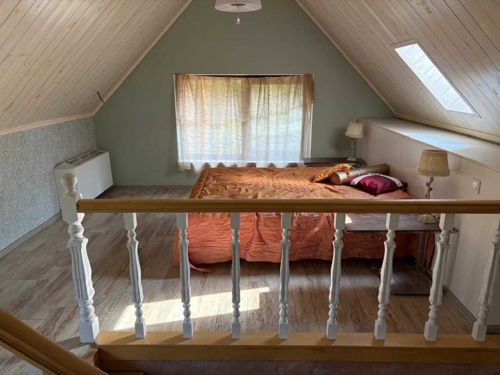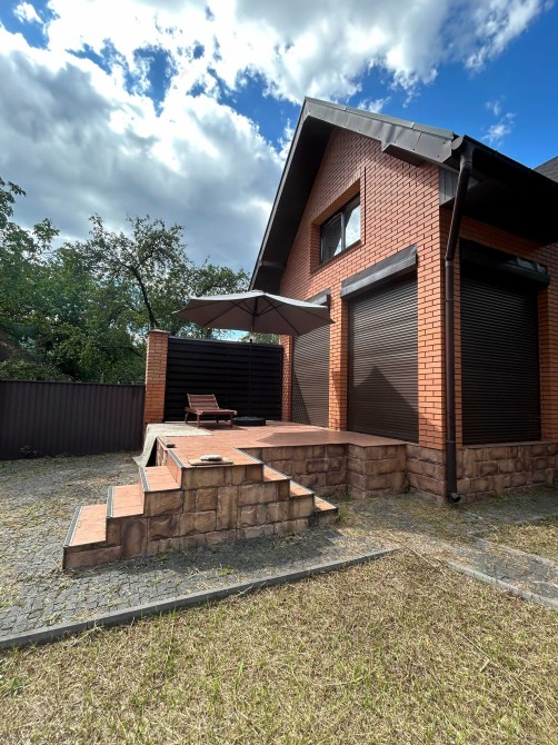 Сучасний якісний котедж 100 м2 в міський смузі, виконаний в стилі французького шале, авторський дизайн-проект (італійська плітка та декоративна цегла, венеціанська штукатурка, шпалери Laura Ashley, італійські меблі). Стіни цегла та декоративна цегла, монолітно-каркасна будівля, панорамні вікна в їдальні з виходом на терасу. Опалення тепловий насос, є газовий проект, водопостачання Київводоканал, септік, деревʼяний гостьовий будинок на 2 кімнати. Надзвичайно зручна доступність, окремий вʼїзд, навколо ліс, але вся міська інфраструктура поруч (супермаркет, школа, садочки, амбулаторія). Розташований в СТ Лісова поляна-2, заїзд з вул. Дніпроводської, Водогін (ДВС), Київ чи з траси Р69. Окремий заїзд та паркувальний майданчик для авто. В гостьовому будинку є погріб, приміщення для зберігання садового інвентаря.