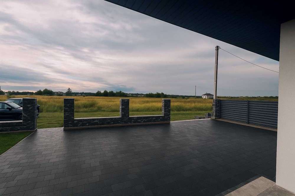 подвір'я буде вимощене бруківкою,є надійна основа для обгородження території