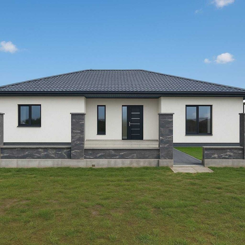 фасад утепленний пінопластом 15см,вікна 2х камерний склопакет,сучасні вхідні двері