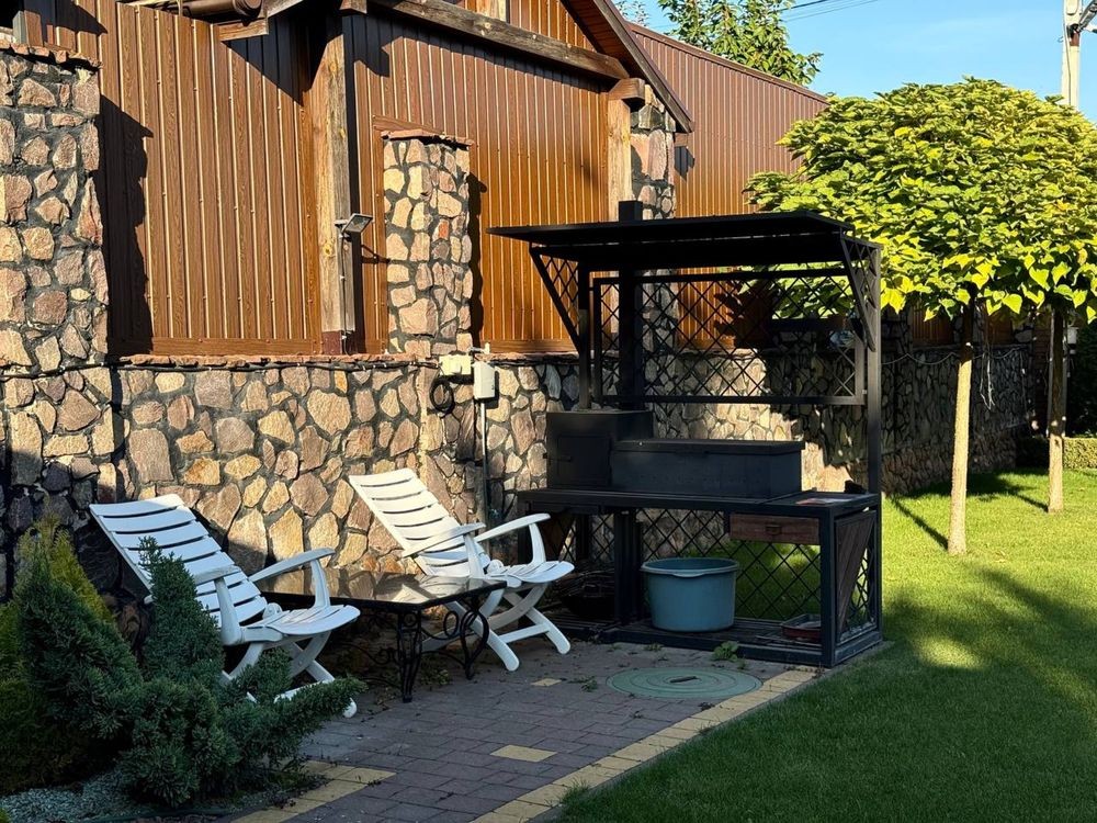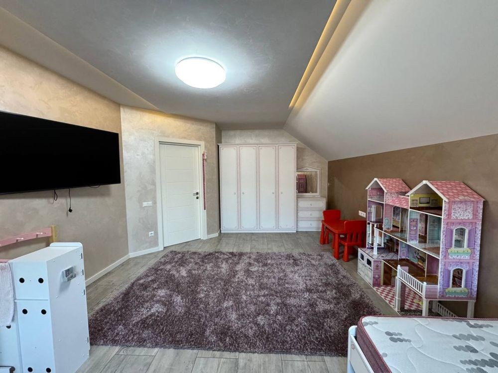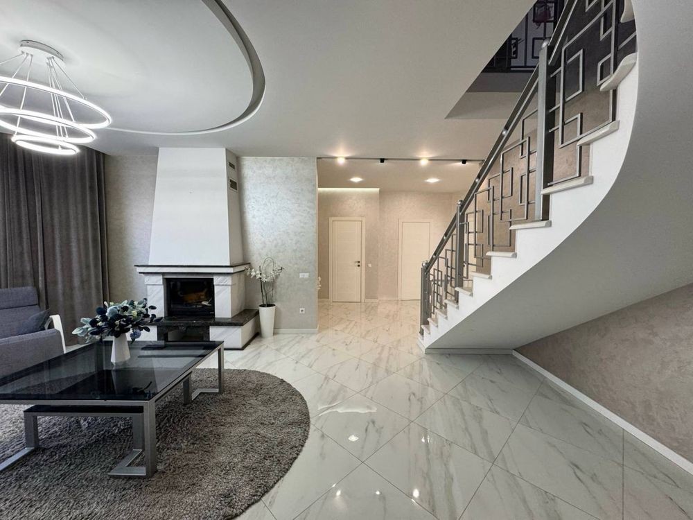 Загальна площа 220м2 (3 окремі кімнати, гардеробна кімната, 2 вітальні зони, одна з яких з діючим каміном, кухня-столова, 2 ванні кімнати та котельня з входом у підвал, гараж)