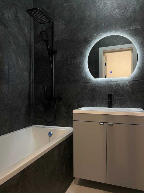 У квартирі якісний ремонт, меблі та техніка залишаються. Тепла підлога у санвузлі, продумане зонування — спальня та кухня-студія.