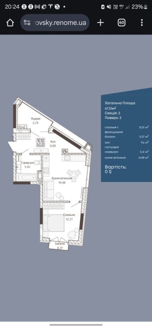 • Общая площадь 47 м2