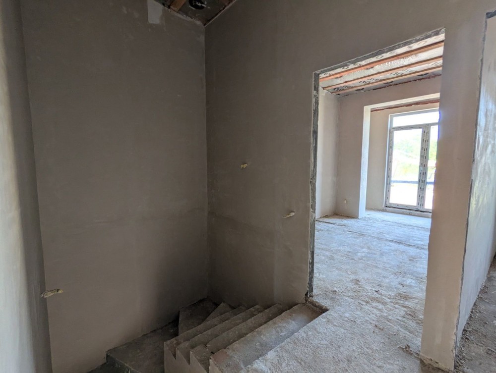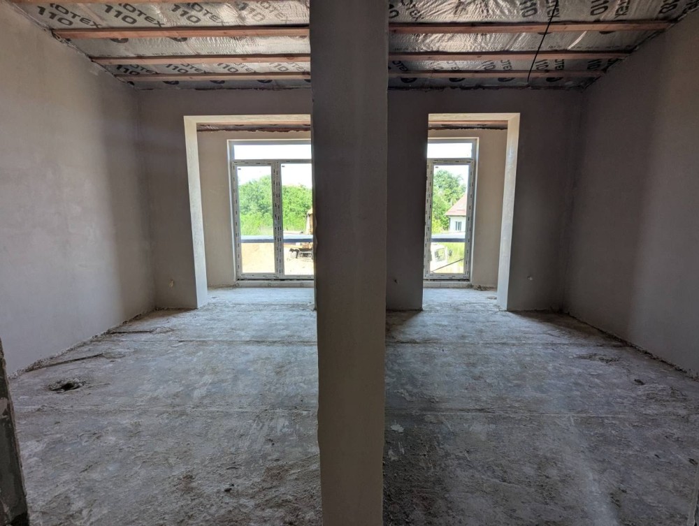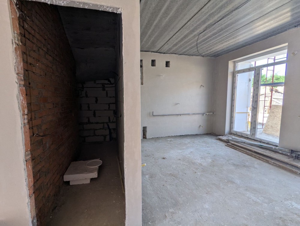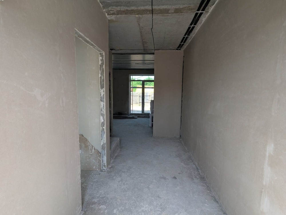 Таунхаус під чистове оздоблення (стяжка, штукатурка). У вартість входить також покладена бруківка, металевий паркан (фальшбрус), ворота, облаштований задній дворик.