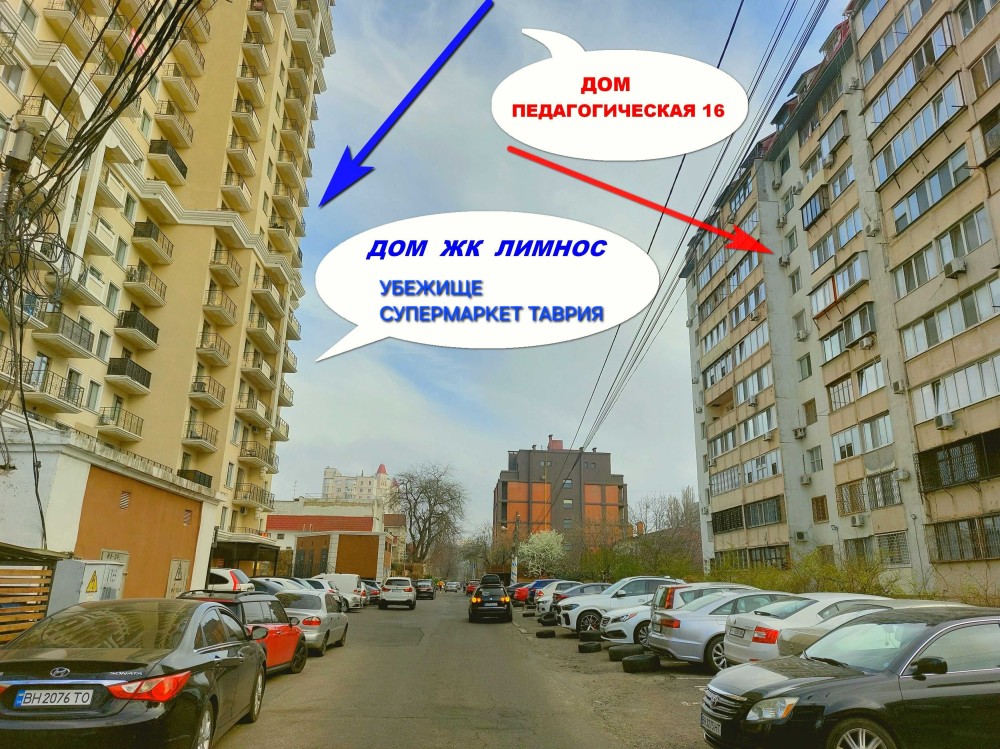ПОДЗЕМНЫЙ ПАРКИНГ который используется как убежище находится в соседнем доме - ЖК ЛИМНОС - смотри фото со стрелками