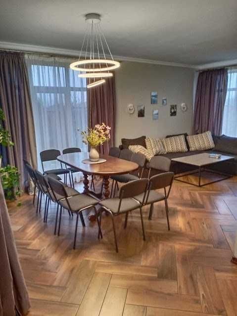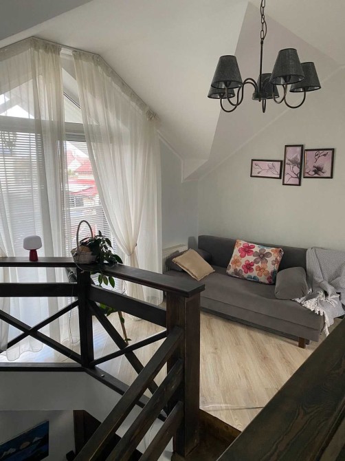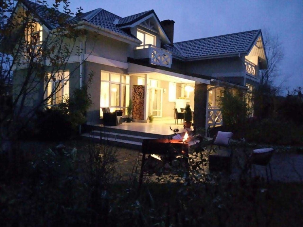 Велика площа на першому поверсі, де може розміститися до 22 осіб. Також зручний вихід на терасу та затишна мангальна зона. Площа будинку 300м.кв, .2 поверхи, 7 окремі спальні (14+ спальних місць), вітальня, вбудована кухня, 2 санвузли на першому та другому поверсі (ванна та душова кабіна), газове опалення.