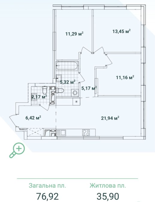 Площа 76,92 м.кв