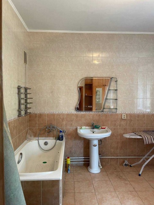 Продаю гарний, якісний будинок, збудований для себе. З ділянкою землі 10.3 сотки. Знаходиться за 250м від Парку партизанської слави (сосновий ліс, озера, дитячі атракціони), а також за 10хв. пішки (550м) від метро Бориспільська, поблизу 29 трамвай та вул. Харківське шосе. Сусіди лише з одного боку, з іншого - вільна ділянка. В саду більше 35 фруктових дерев. Є скважина з хорошою питною водою. Паркан від дороги капітальний з червоного буту, ворота та паркан з боків з нержавійки. Будинок стоїть в глубині ділянки, подалі від дороги. Покриття криши з оцинкованого металу. Централізоване міське водопостачання. Каналізація тільки від цього будинка, капітальна підключена на сусідню вулицю. Газ. Загальна площа будинку - 299.9 кв.м. Два жилих поверха і цокольний, що має три вікна на сонячну сторону; 2-й поверх включає вхідну веранду, коридор, ванну (14 кв.м), окремий сан.вузол, кухню (18 кв.м), хол-зал (близько 60 кв.м); 3-й поверх включає коридор, сан.вузол, чотири спальні, а також капітальний балкон-кімнатку. Перекриття між 2 і 3 поверхами - дерево (дуб). Підлога - паркет, утеплення, плита. У ванній та кухні - плитка. Будинок світлий (великі вікна, є решітки), теплий і одночасно «дихаючий» завдяки правильній вентиляційній системі. Гараж на два авто (з «ямою»). Земля приватизована. Всі документи в порядку. Власник. Можлива частина оплати обʼєктами житлової чи нежитлової нерухомості.