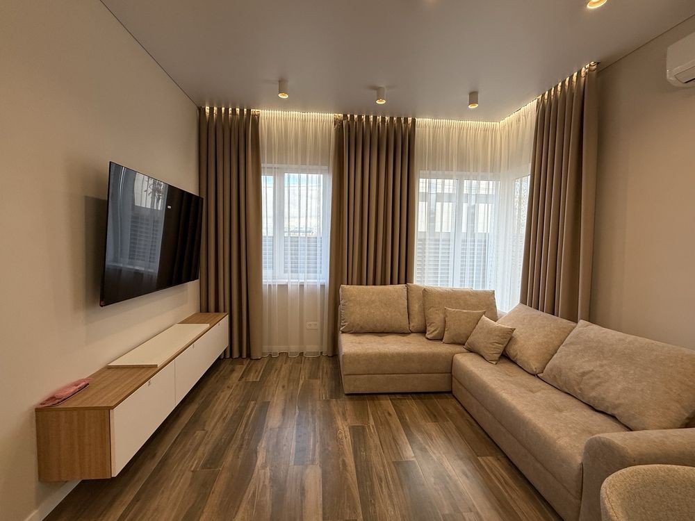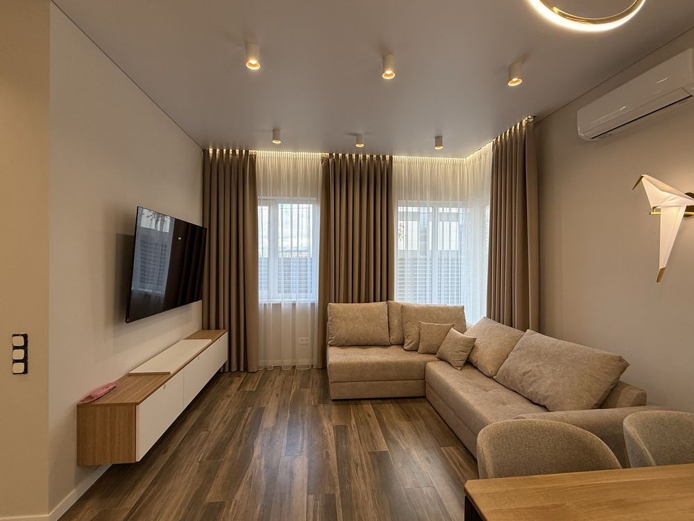 Планування : простора кухня-вітальня , 2 окремих просторих кімнати правильної форми, декілька санвузлів та передпокій