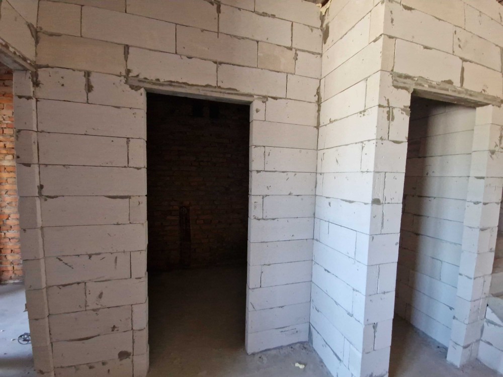 Стіни: червона керамічна цегла, перегородки — газоблок