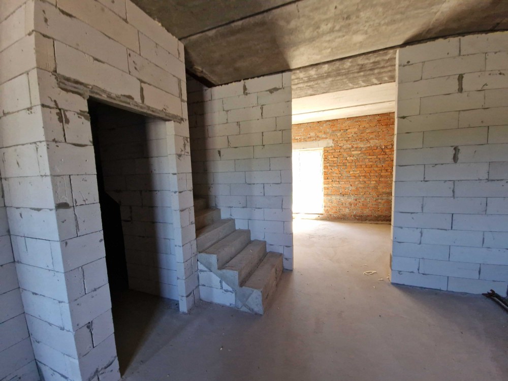 Усередині: вапняна штукатурка, стартова шпаклівка; монолітні сходи