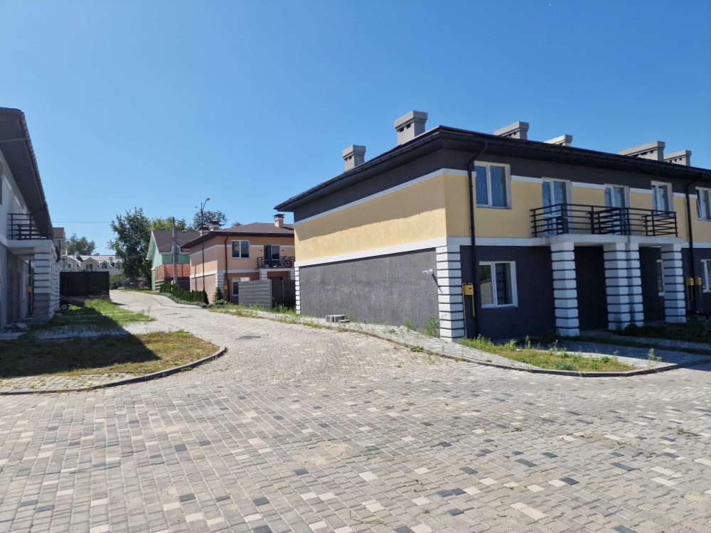 Продається двоповерховий крайній таунхаус у закритому котеджному містечку Sun City на березі р. Горенка — просто навпроти озера. Тихо, зелено, безпечно: контрольно-пропускний пункт, відеоспостереження, прогулянкові алеї, дитячий і спортивний майданчики, зони BBQ.