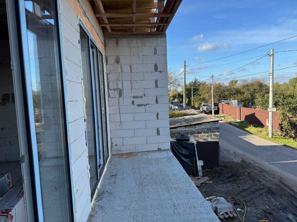 Стіни ,газоблок 300мм, утеплений мінеральною ватою 100мм, що дуже важливо для газоблоку. Монолітне міжповерхове перекриття та сходи.Віконний профіль 70мм, двокамерний склопакет з енергозберігаючим склом.Дах двошаровий, горище 50 см, покрівля з німецької металочерепиці утеплена супер дифузійною мембраною, пароізоляційною плівкою та базальтовою ватою 200 мм.