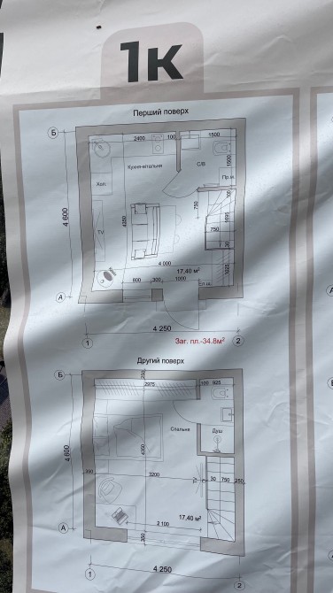 Кухня-вітальня, 1 кімната на 2 поверсі, с/в
