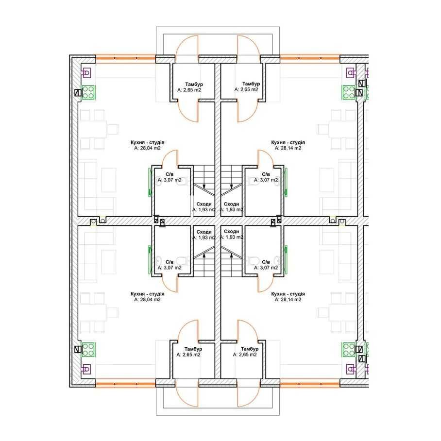 Комплекс на 32 таунхауси по 71м2.