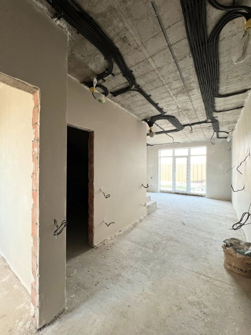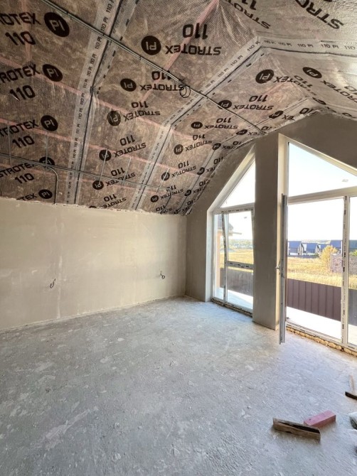 Будинок №8 — вже розпочато ремонт: розведена електрика, виконана штукатурка, тепла підлога по всьому будинку, встановлено тепловий насос Vaillant.