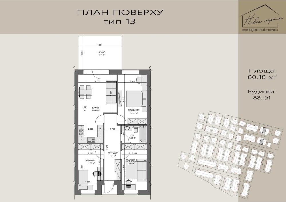 Одноповерховий таунхаус площею 80 кв.м. у "Новій Мрії" - сучасному котеджному містечку в Гостомелі. Це не просто будинок, а справжнє місце сили, де ви зможете знайти гармонію з природою та спокоєм.