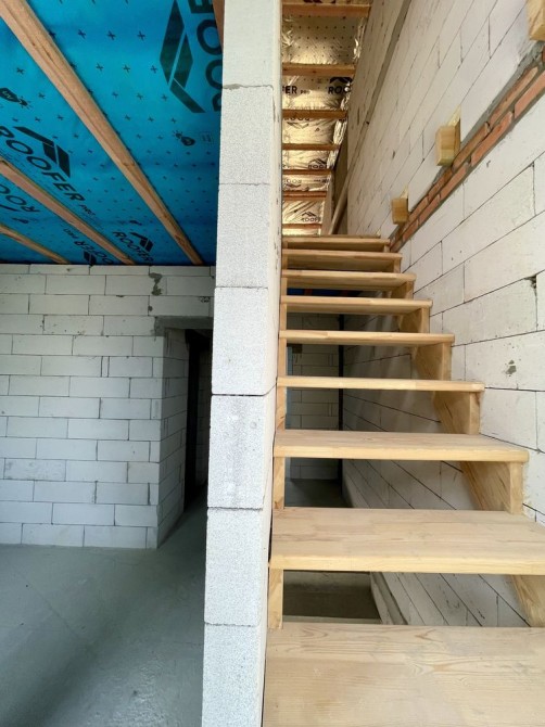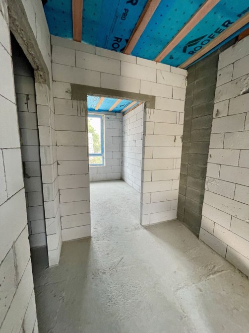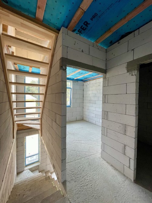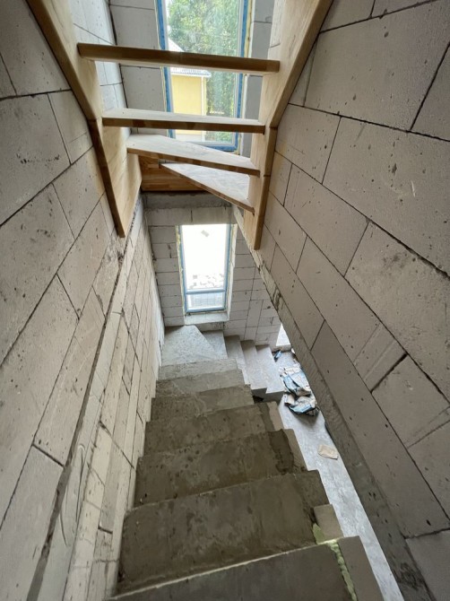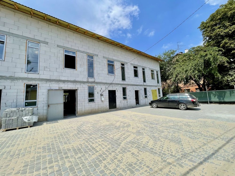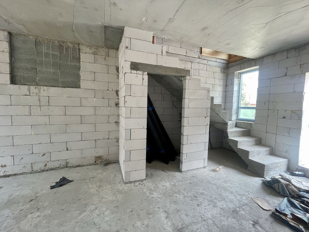 На даному етапі вже збудована коробка , зроблені фасади,встановлено вікна, покрівля, та вилиті сходи, ведуться внутрішні роботи, тротуарна плитка.
