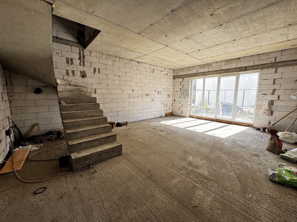 Дуплекс . Новострой 2020г.Стены газоблок+минвата100мм.Высота потолков 3м.Скважины.электричество.канализации раздельные.Лес 200м.После строителей.