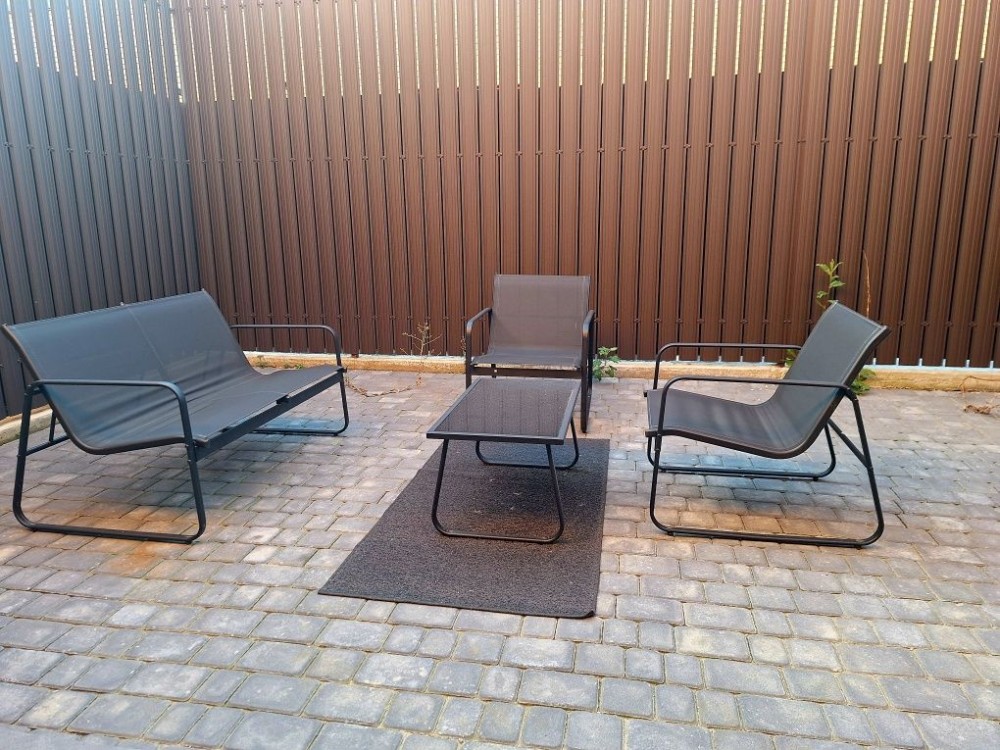 На терасі облаштована зона відпочинку, є зарядка для електромобіля. Паркомісце