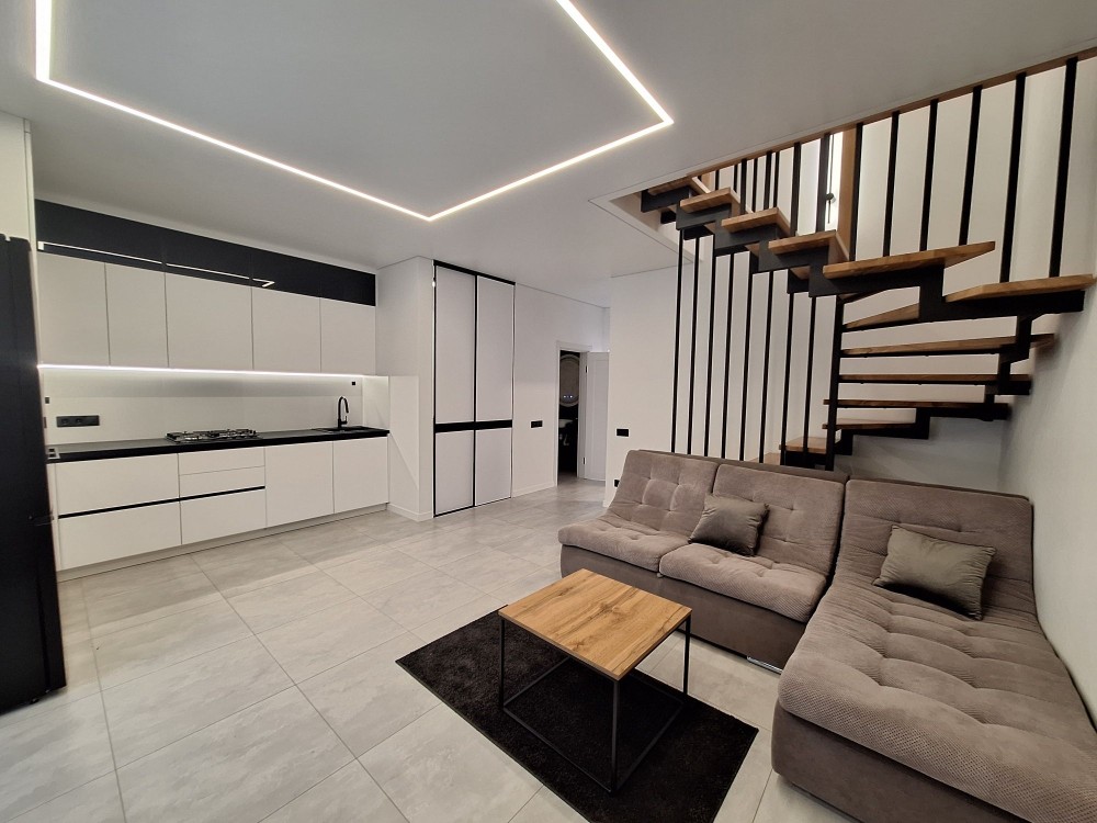 Простір облаштовано в сучасному стилі, ергономічно, де кожний куточок виконує свою функцію та несе затишок та комфорт