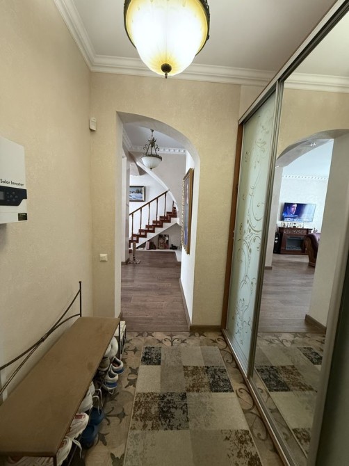 Техника : посудомойка Bosh , стиральная машина Indezit , котёл Viessman , телевизор Samsung на 1 этаже , камин электро, Отопление от котла даже в подвале . Охрана на весь дом карабинёр. Ролеты на 2 этаже , 1 решётки .