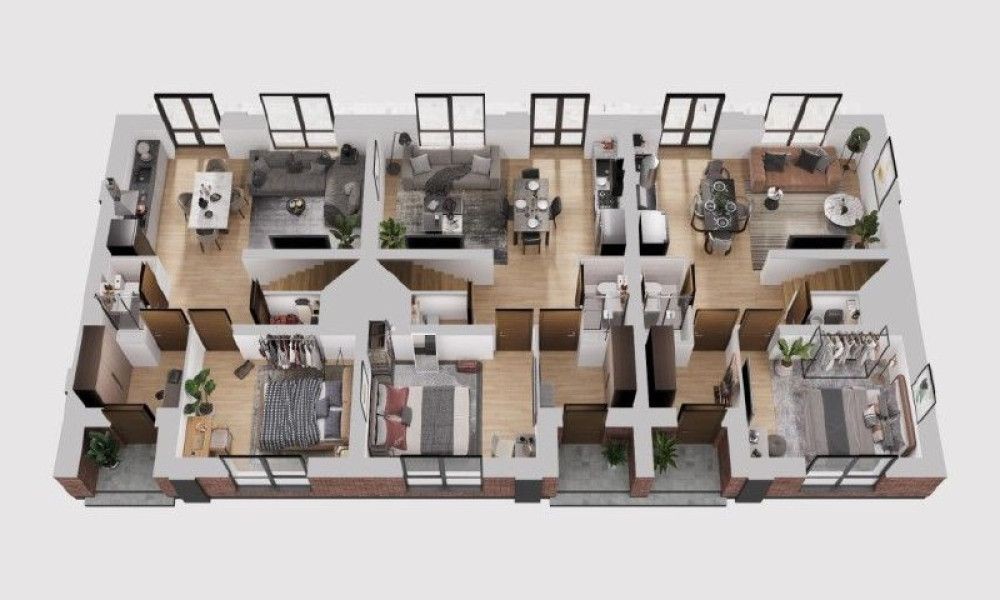 Сучасний таунхаус у самому серці міста. Поруч - магазини, супермаркети, школи, садки, парки, поліклініка, банки та зупинки транспорту. Усе для комфортного життя в пішій доступності.