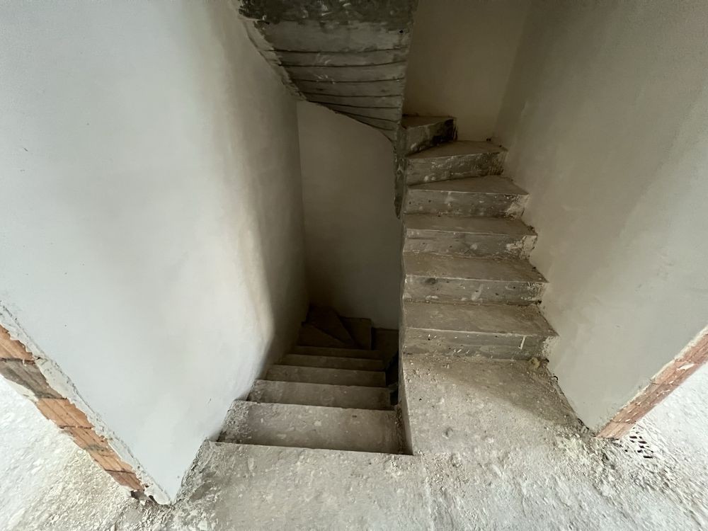 Стіни з керамоблоку, перекриття між поверхами — плити, сходи на другий поверх бетонні, фасад утеплений (пінопласт 100 мм), дах — металочерепиця, добре утеплений мінватою (200 мм)