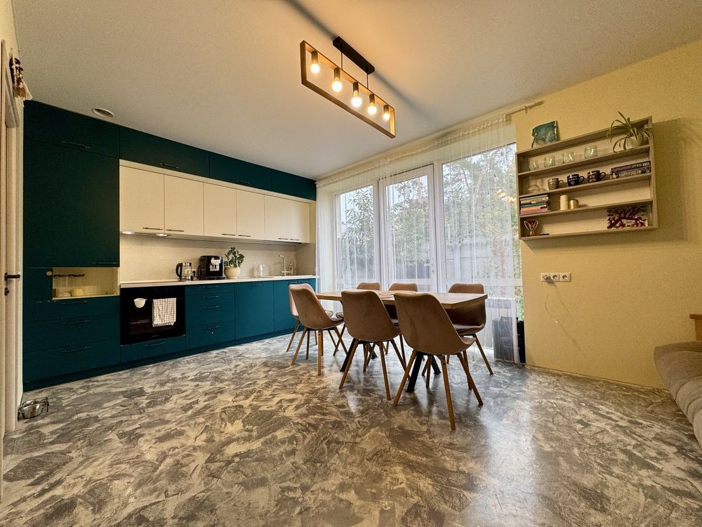 Таунхаус продається з меблями та технікою: холодильник, пральна машинка, індукційна поверхня, електродуховка.