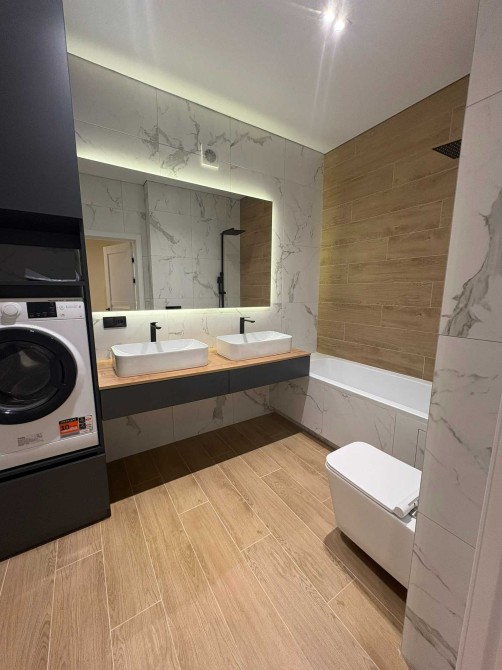 Є вся техніка - холодильник, духова шафа, плита, пральна машина (техніка нова, на гарантіі). Дизайнерський ремонт. Повне меблювання.
