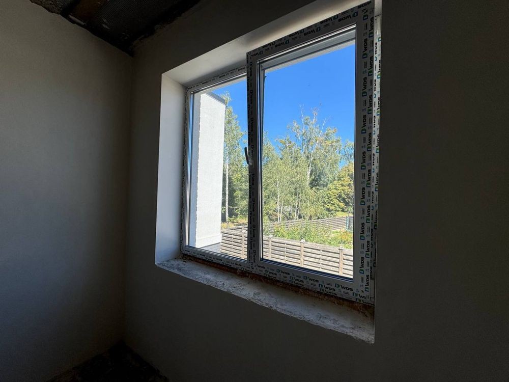 Таунхаус у Ворзелі, площею 105 м², з ділянкою 1 сотка. Будинок із газоблоку, утеплений пінопластом (100 мм), фасад декоративна штукатурка, дах металочерепиця. Фундамент монолітно-стрічковий, перекриття плити, бетонні сходи. Вікна енергозберігаючі склопакети. Комунікації: свердловина, септик, центральний газ, електролічильник 10 кВт (день-ніч). Планування: кухня-вітальня, 4 кімнати, гардеробна, 2 санвузли. Зручне розташування — поруч магазин, кав’ярня, відділення Нової пошти, виїзд на Варшавську трасу.