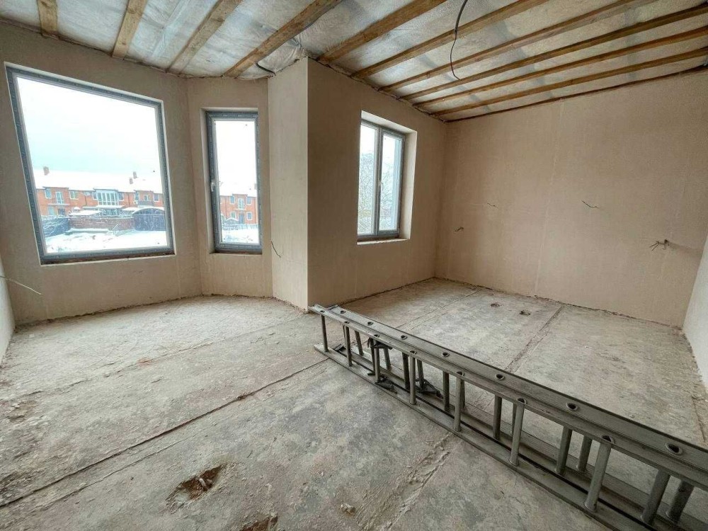 Пропонується таунхаус площею 116 м² на ділянці 1,3 сотки. Стіни з газоблоку 300 мм, монолітно-стрічковий фундамент, бетонні сходи, металочерепиця на даху з утепленням. В будинку виконано штукатурку та лазерну стяжку. Енергозберігаючі вікна, електрика з лічильником "День-Ніч" на 7 кВт. Комунікації: центральне газопостачання, вода зі свердловини, міська каналізація. Можливість надбудови третього поверху для розширення площі.ТОРГ
