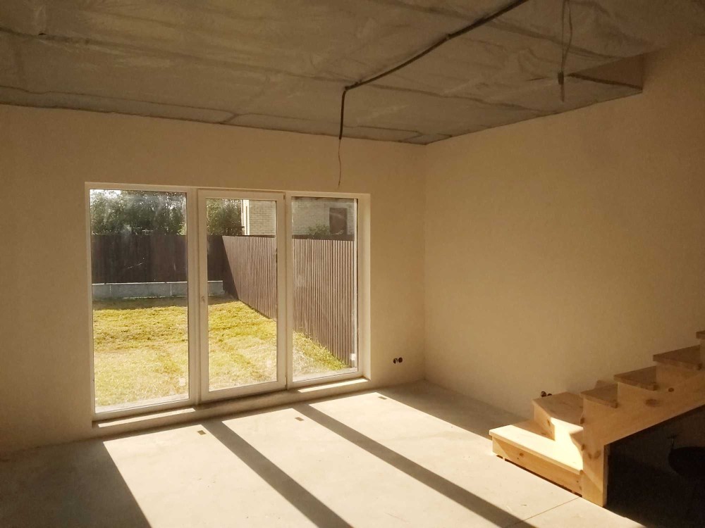 Таунхаус готовий до чистової обробки. Виконано всі основні роботи: розведена електрика, встановлена ​​система опалення, тепла підлога та радіатори.