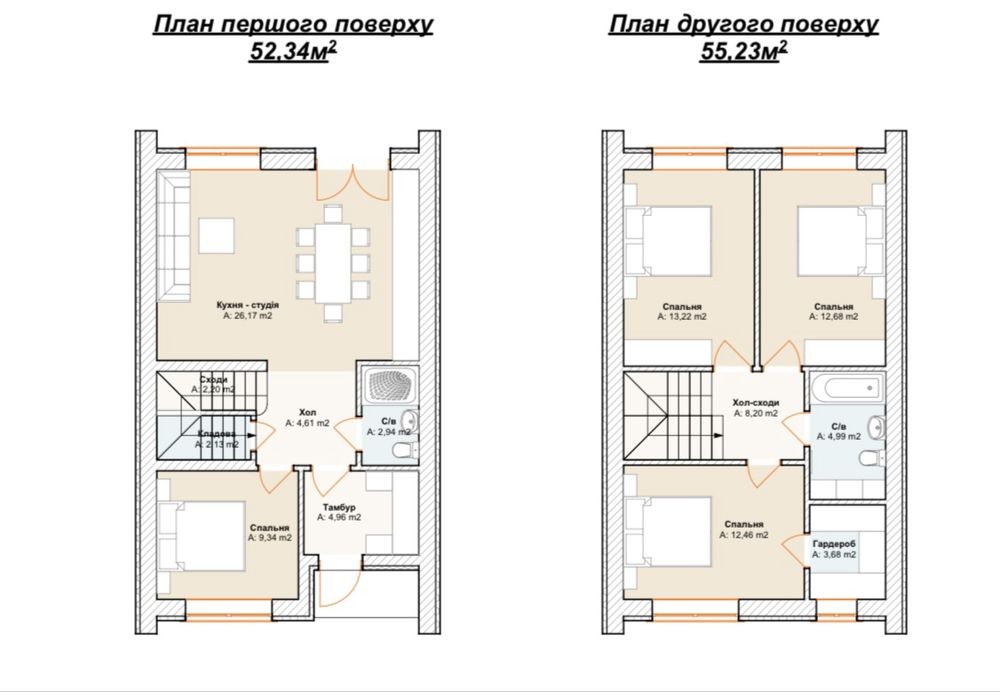 Загальна площа 105кв.м- 4 спальні, кухня-вітальня, 2 ванні кімнати
